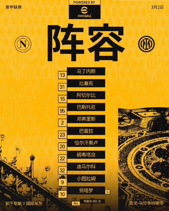 全场比赛结束,那不勒斯1比1和国际米兰握手言和,孔蒂的球队5轮不胜,在积分榜上继续以1分之差屈居次席。稍早前亚特兰大主场和保级队威尼斯0比0闷平,仍落后国际米兰3分。